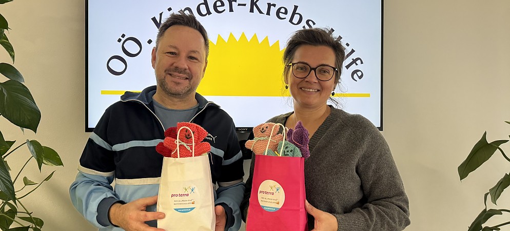 Vor kurzem war Michi Öhler vom gemeinnützigen Verein Pro Terra bei uns im Büro zu Gast, um uns etwas zu überbringen: Die gehäkelten Teddys wurden von einer Dame aus Eferding in liebevoller Handarbeit hergestellt und es war ihr Wunsch, damit Kindern eine Freude zu bereiten. Die kleinen Bären werden im Elternzentrum der Kinderonkologie für die Familien bereitgestellt. Herzlichen…