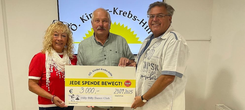 Das Trainerpaar Irene und Albin Hinterberger und gleichzeitig Vorstand des Tanzclubs überbrachte uns eine Spende über 3.000 Euro, die im Zuge der Vereinsschließung an einen wohltätigen Zweck übergeben werden sollten. Unser herzlichster Dank an den Hilly-Billy Dance Club für die Unterstützung unserer Arbeit für betroffene Familien in Oberösterreich!