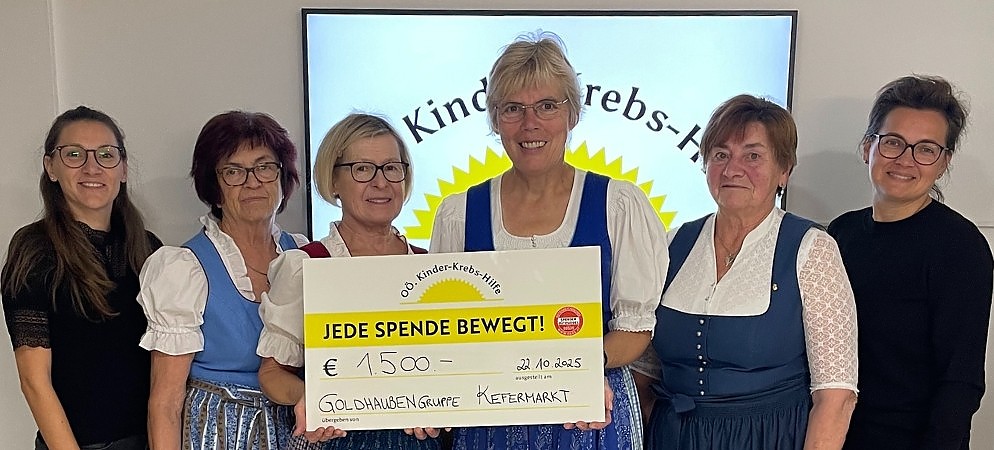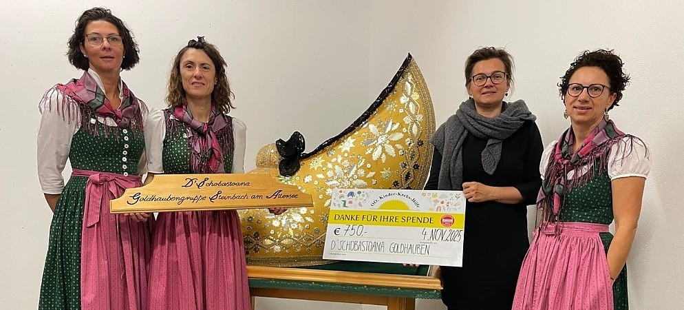 Herzlichen Dank der Goldhaubengruppe „D´Schobastoana“ aus Steinbach am Attersee für die Unterstützung! Der Betrag wurde u.a. im Rahmen einer Veranstaltung durch freiwillige Spenden erreicht und vor kurzem an die Obfrau der OÖ. Kinder-Krebs-Hilfe, Karin Schuster-Schlichtner, übergeben. Ein großes Dankeschön für euer Engagement!